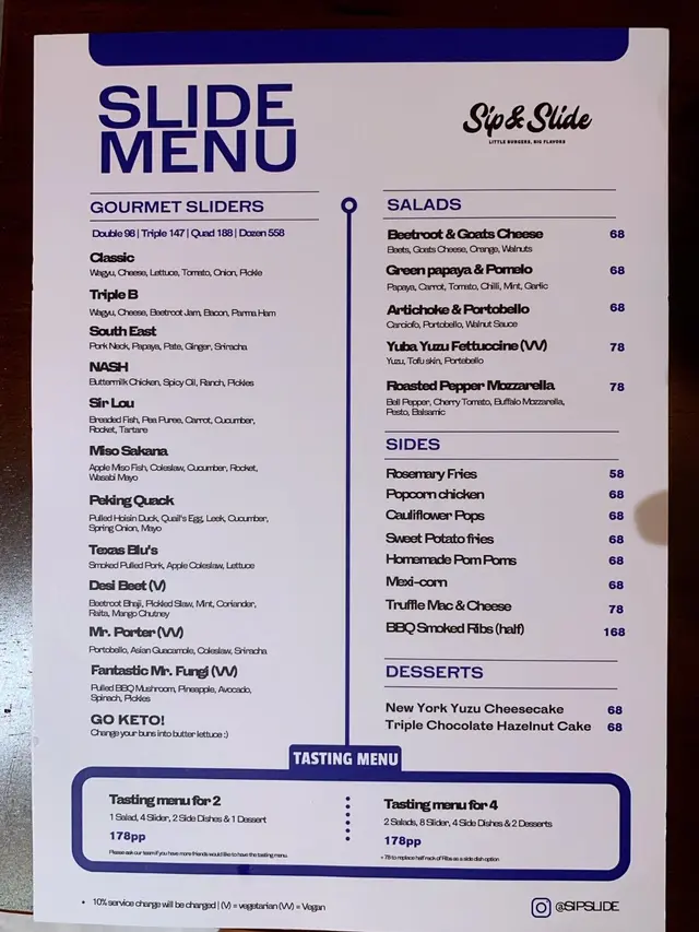 1 Salad, 4 Slider, 2 Side Dishes & 1 Dessert。