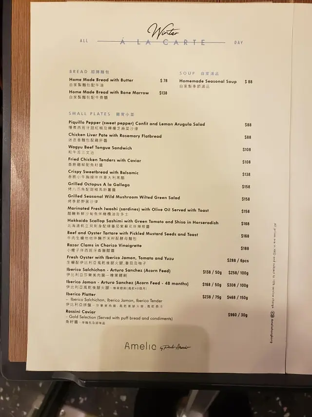 頭盤點了iberico Jamon風乾後腿火腿48個月,我選擇了50g ($168),48個月西班牙風乾後腿火腿當中的鹹味適中帶甘香,肉質軟腍帶有肥膏,食落有嚼頭且有橡果的甜味,令人載三回味無窮。