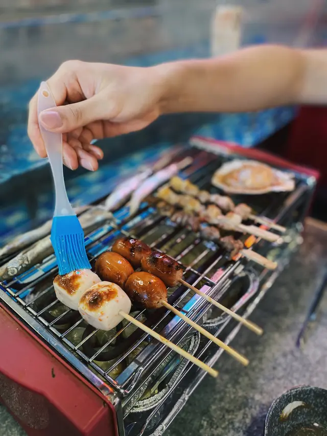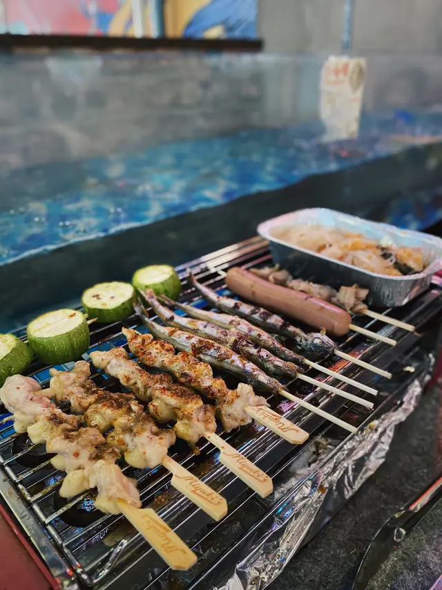 自助區食物擺得好衛生,全部都有膠蓋遮住,最中意拎雞軟骨串、多春魚同雞腎,烤到香脆之後因應自己口味加孜然粉同燒烤粉調味,拍得住喺居酒屋食嘅味道😋。另外亦有丸類同腸仔,可以烤到咁上下掃上蜜糖,同樣好味🥰。