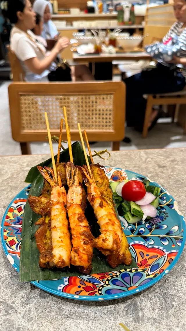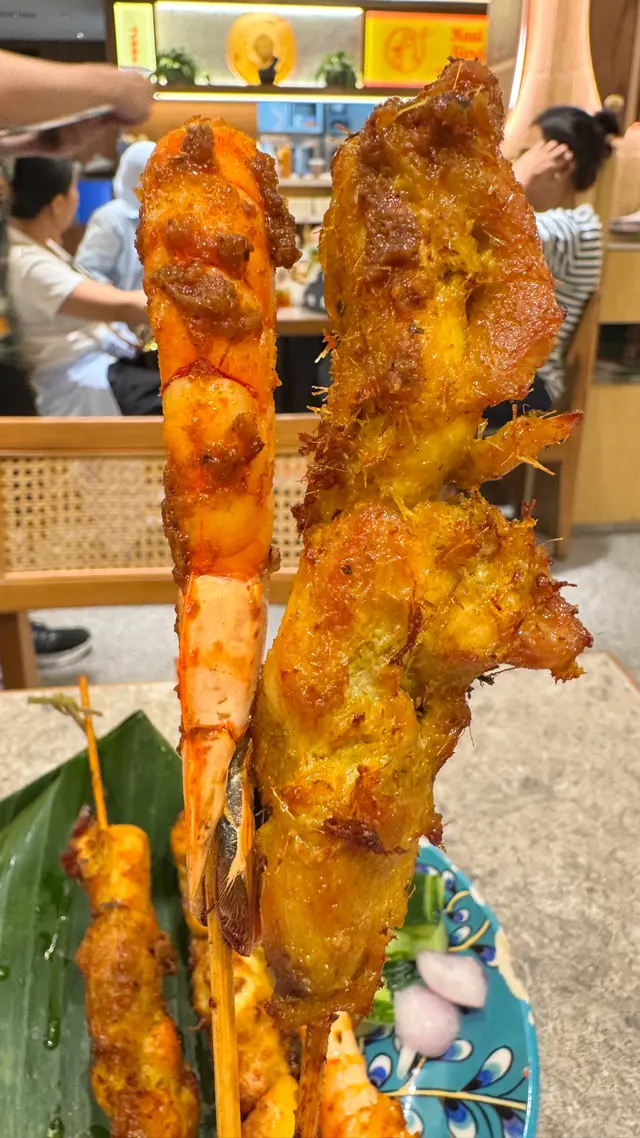 $68「串燒拼盤」:拼盤裏邊嘅材料包括有3串雞肉3串大蝦,全部都燒得幾香口好食🤣,餐廳亦都提供一碟 Sambal 叄峇醬,咁又再惹味啲啲🤣