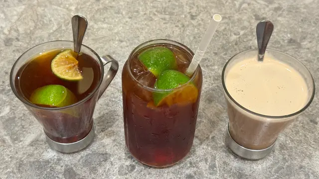 跟「下午茶餐」叫咗「青檸紅茶(熱)」、「馬來拉茶(熱)」、「青檸紅茶(凍)」:「青檸紅茶」叫咗走甜、夠濃郁🤣,「青檸紅茶(凍)」叫咗少甜少冰、夠清新🤣,「馬來拉茶」都叫咗走甜有幾典型嘅星馬奶茶香味同口感🤣