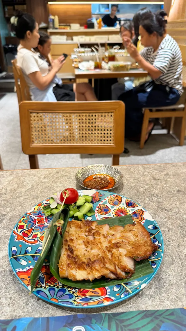 $65「參峇醬燒豬頸肉」:豬頸肉脂肪含量極充足所以好甘香,肉質就爽滑🤣;Sambal 叄峇醬一般會認為係印尼🇮🇩加咗蝦醬嘅辣椒醬,不過其實淨係喺印尼🇮🇩種類已經有超過200種,咁新加坡🇸🇬馬來西亞🇲🇾亦都有自己嘅品種🤣,所以我都唔係好清楚邊種 Sambal 打邊種因為種類實在有好多🤣;呢間餐廳嘅 Sambal 叄峇醬同豬頸肉分開上,叄峇醬有啲啲鹹香,要嚟沾豬頸肉一齊食,更加惹味🤣