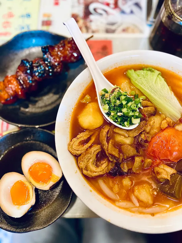 🥢車仔麵配特濃番茄薯仔湯 + 鹵大腸 & 溏心鹵蛋 & 豬紅 $71