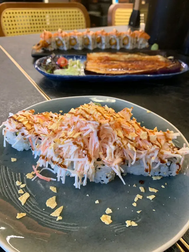 造型特別,用包住鰻魚、牛油果嘅手卷,堆成山嘅形狀,再喺上面鋪上厚厚一層蟹柳,唔單止造型加分,味道都不俗。