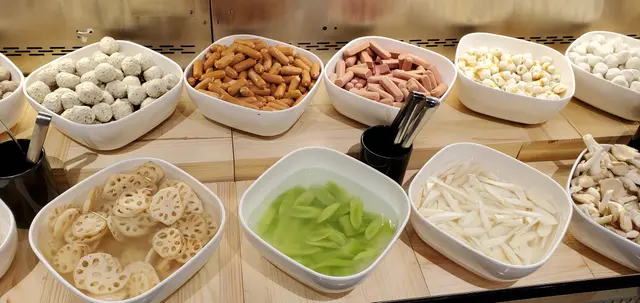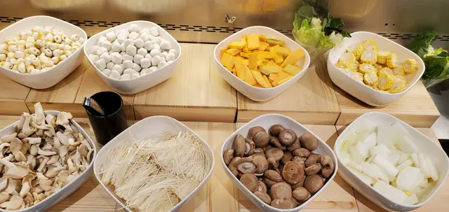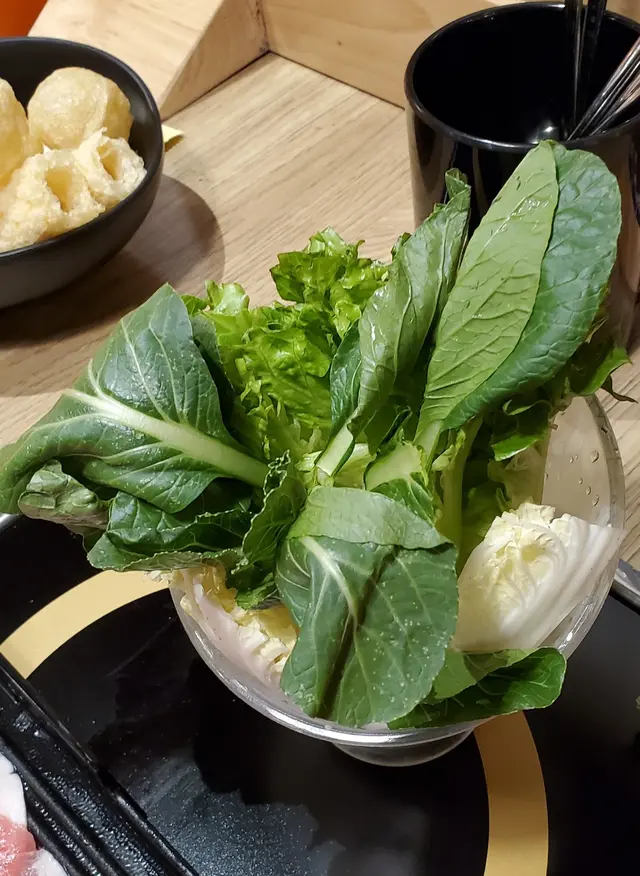 這裏是用QR Code手機落單,因湯底已有雞,所以我們沒有再選雞肉。三款肉上桌時,第一感覺望落去都很靚,雖然這是最便宜的套餐,牛肉的質素都的不錯,吃落雖然不會是那些很多油花、很淋的感覺,但是這塊牛空腹板肉都很軟熟,而且很有牛肉味,這價錢嚟講算是不錯, 我上次到別間火鍋放題店,吃一個三百多元的套餐,那款牛沒有牛味之餘,牛肉被切得很薄, 淥完後, 牛肉碎濕濕的,所以今次這個牛實在令我有一些驚喜,豬梅花肉屬於正常,肉質淋滑,羊肉就比較肥,且帶有一點羊騷味,我們後來都再點了牛及豬肉。