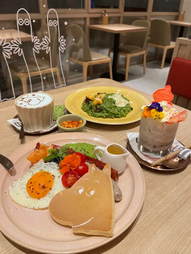 全日早餐有三文魚、太陽蛋同姆明造型嘅pancake,打卡一流!