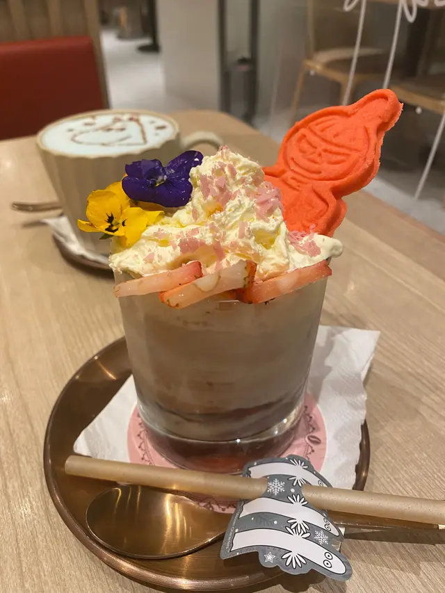 我呢杯係士多啤梨加白朱古力同鮮奶,飲落唔會太甜,而且造型仲要超級靚,餅乾仲係阿美嘅樣,真係超級有誠意!
