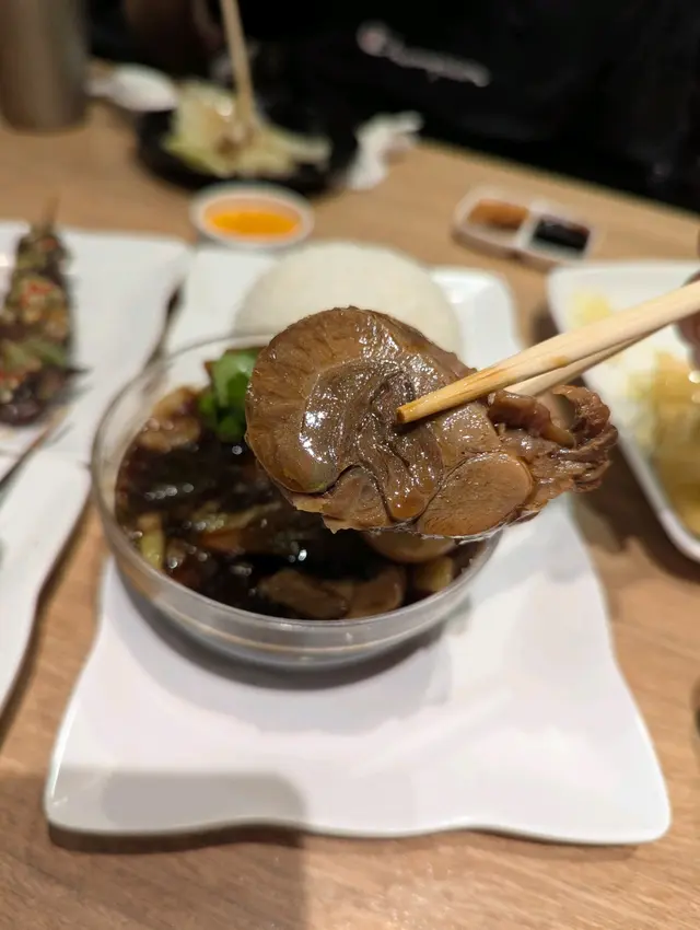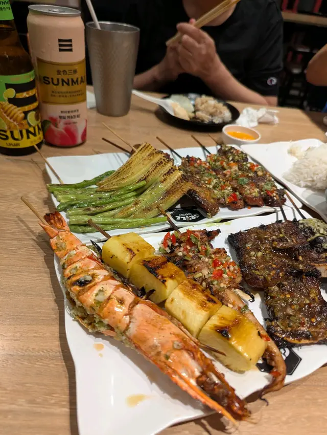 串燒每款都燒得焦香, 價錢大多只係ard $20 串, 性價比好高. 雞翼肉嫩, 雞豬牛都唔會鞋口. 魷魚鬚都爽彈. 可選辣或唔辣, 按此會分別設左唔同醬, 而佢地醬調味做得好好. 特別係芫荽酸辣醬, 真酸辣惹味