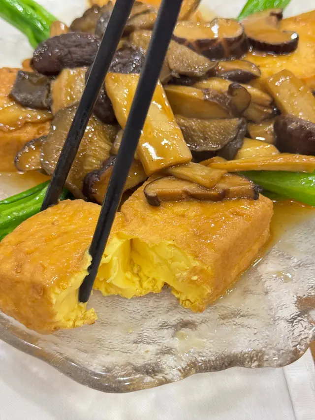 没想到小小的私房菜对豆腐要求都这么高,在香港真的很少能吃到自己整的豆腐了,看起来巨厚巨大块,没想到还能吸满菌菇的鲜味,滑嫩嫩的入口即化