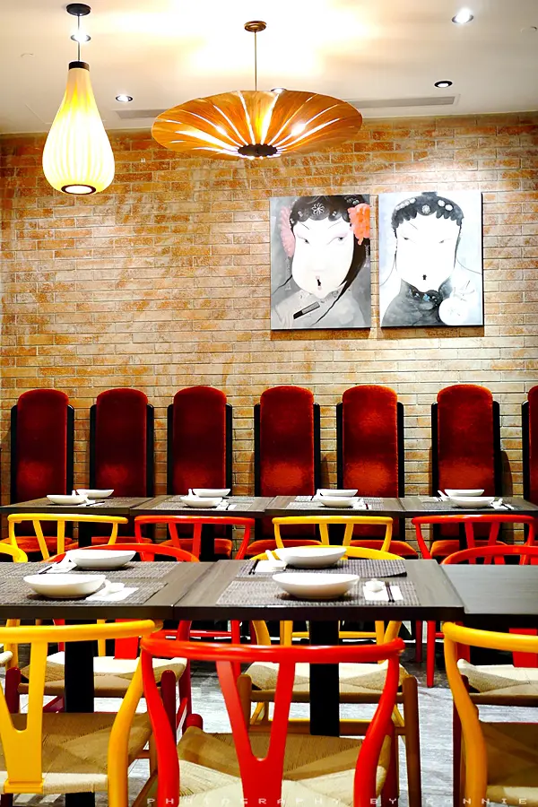 說回店子環境,店子的設計也很有新派感,融合了西方和中國的設計味道,掛上了不同設計的吊燈、配上紅色/黃色的椅子,感覺很有活力,很喜歡呢。
