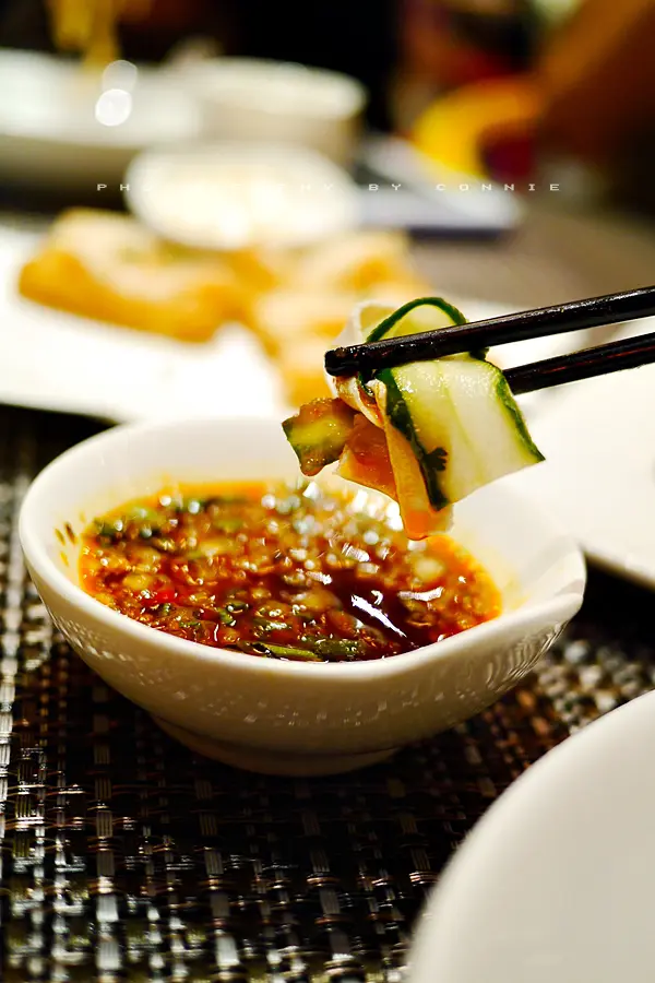 一看到餐牌便嚷住要點這個嚕。以「晾衫」作菜名很特別呢,這道菜就是把白肉和青瓜切得薄薄的「晾」在一個木架上,是否很像在晾衫呢? (笑) 白肉本身味道較清淡,所以把它再沾上些自家製的辣汁,很惹味啊! 友人超喜歡這醬料!