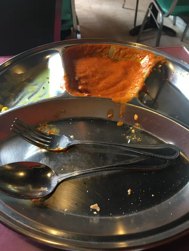 MAIN黎了! 一大個銀盤分左好幾格,左邊係雜菜豆,中間係牛俐,右邊薯條,下面最大格係煎餅,其實一般個SET係煎餅+飯,但我食過個量係好多好多~ 所以我ORDER個時講明我唔要飯.咁佢地就會走飯,但加多幾件煎餅俾你~ YUMMY!!! 左邊雜豆一般,唔算熱,個汁有啲「傑」,薯條食得出係新鮮炸,好味!中間的牛脷有三舊,薯仔兩舊,雖然係橙橙地色,但唔係好辣,我本身唔食辣,都食得到,牛脷好軟啖啖肉,薯仔都好軟身,熱辣辣食落去非常野味!