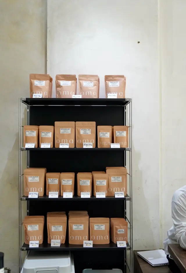 作为手冲爱好者,遇上主打自家烘焙的店,一般都要多看几眼。而Oma更是名副其实的手冲大户,点单时咖啡师直接抱了一堆豆子在台面上铺开让我选。