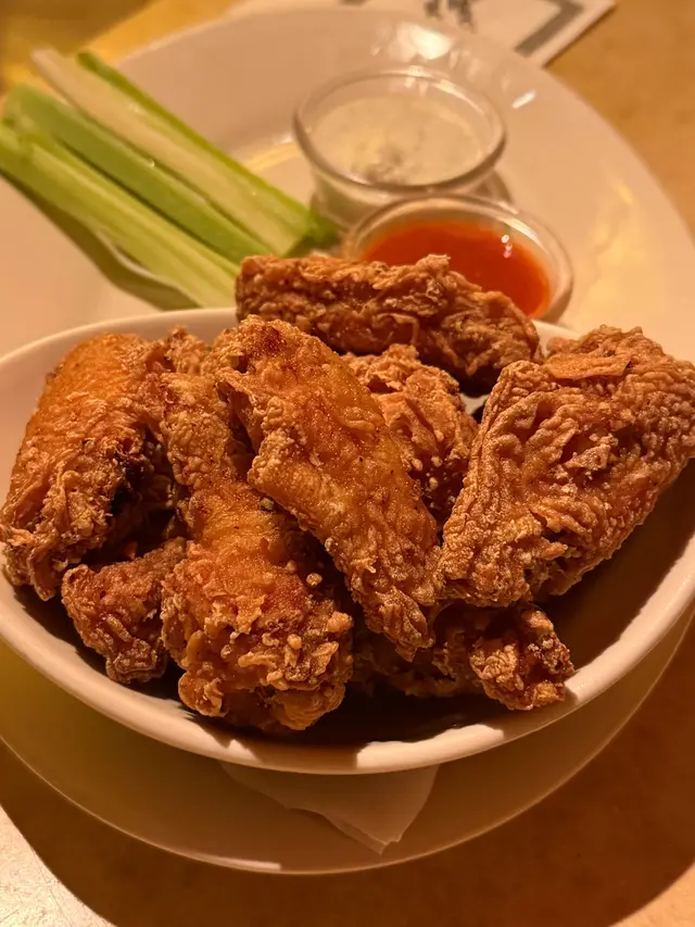 唔係全部菜式都係美式分量 or#tm66744646等級42025-11-23 關注 今次叫左水牛城香辣雞翼、香脆蟹肉球及烤蒜雞肉蝴蝶粉~首先水牛城香辣雞翼,這道菜的最大亮點是其濃郁的水牛城辣醬,帶有微酸和香辣的層次感。雞翼的外皮本應該香脆,感,點上特製醬汁後口味雖濃但口感層次略有不足。雞翼份量十足,與店家配備的藍芝士醬和清爽西芹條搭配,辣味與奶香平衡得宜。香脆蟹肉球則外酥內嫩,但分量略少,只有6小球😢😢炸至金黄的外皮包裹著鮮甜肉質的蟹肉餡。烤蒜雞肉蝴蝶粉其香濃的蒜香奶油醬吸引。蝴蝶粉墊底醬汁醇厚,包裹住粒粒飽滿的意粉,雞肉肉質嫩滑,奶香和蒜香交織令人回味,份量十足。以上食評乃用戶個人意見 , 並不代表OpenRice之觀點。讚好分享唔係全部菜式都係美式分量 芝樂坊餐廳 https://s.openrice.com/QrbT04r5V00檢舉 張貼 評分4味道3環境3服務3衛生3抵食用餐途徑堂食
