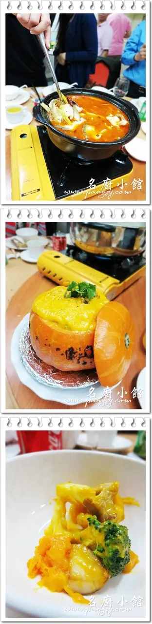南瓜四寶盅,賣相相當可愛啊。原個南瓜內釀入了西蘭花、椰菜花、草菇及冬菇。四寶蔬菜及南瓜味道甜美非常,替之前密集式的葷類菜式起了緩衝作用。