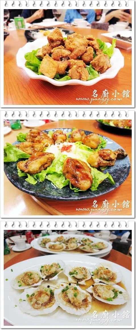 金蒜銀絲蒸元貝皇,元貝皇份量十足,簡單地配以粉絲、炸蒜蓉及蔥花蒸熟,上桌時淋上豉油,這樣已相當好吃。