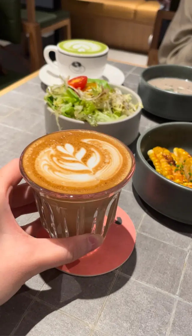 朋友則要了杯Matcha Latte。兩杯都有心型拉花💗