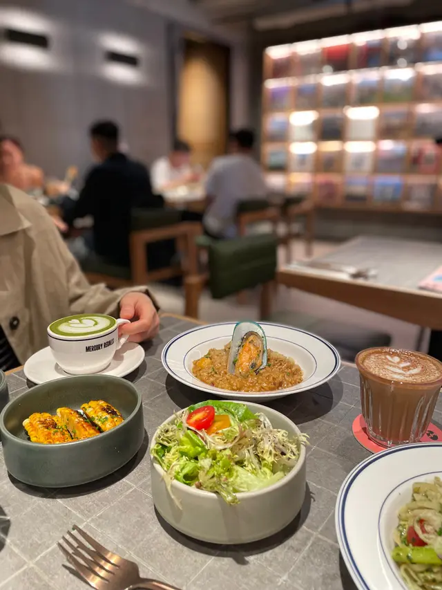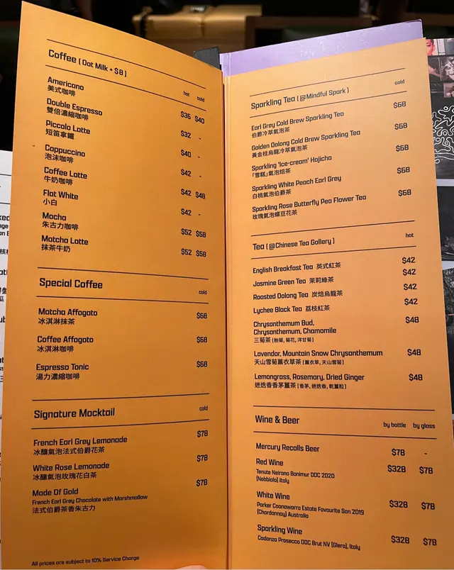 店員先為我地送上飲品,這裡是朝啡夕酒的形式,飲品選擇都唔少。我點了一杯Flat white 咖啡,帶堅果風味的咖啡香,奶泡打得綿密,飲落幾舒服。