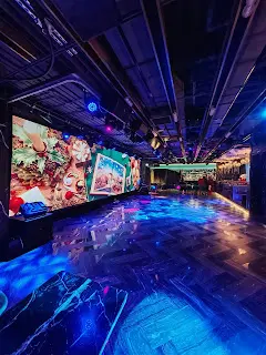 而且別於一般西餐廳,設置一個大舞台,全晚播放着流行音樂;不同日子的晚上會有現場歌手或特別表演節目,