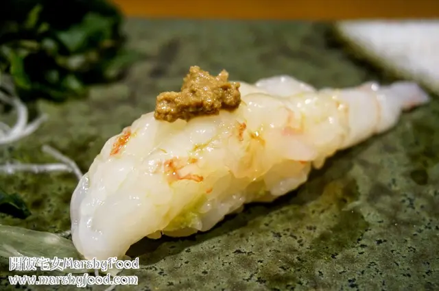 大大隻的牡丹蝦上方更奢侈地放上了一小堆的燒蝦膏, 放入口中先是一股香口甘甜的蝦膏味, 再來混著鮮味十足又夠厚肉的牡丹蝦, 兩者味道非常匹配, 味蕾一直沒有冷場.