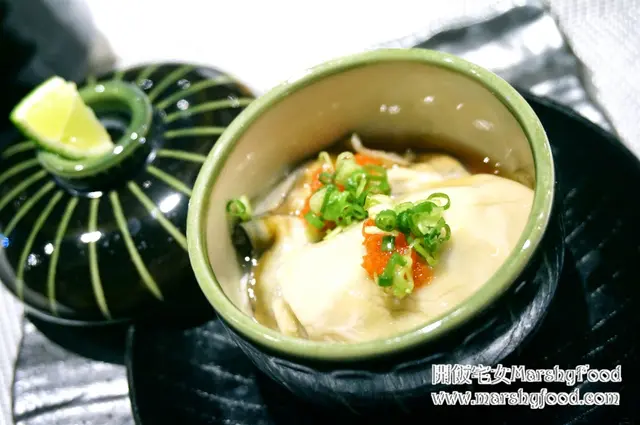 一小杯上來起初以為怎麼這麼快就上湯了? 打開蓋後才發現原來放了一整隻來自九州的岩蠔在內, 蠔的體型本身頗大又夠肥美, 個人吃蠔不喜歡加太多調味, 一啖入口巳能吃出那份海水的微咸的鮮味, 蠔味也夠濃郁, 味道能媲美在日本吃過那個即開的岩蠔, 水準不錯.