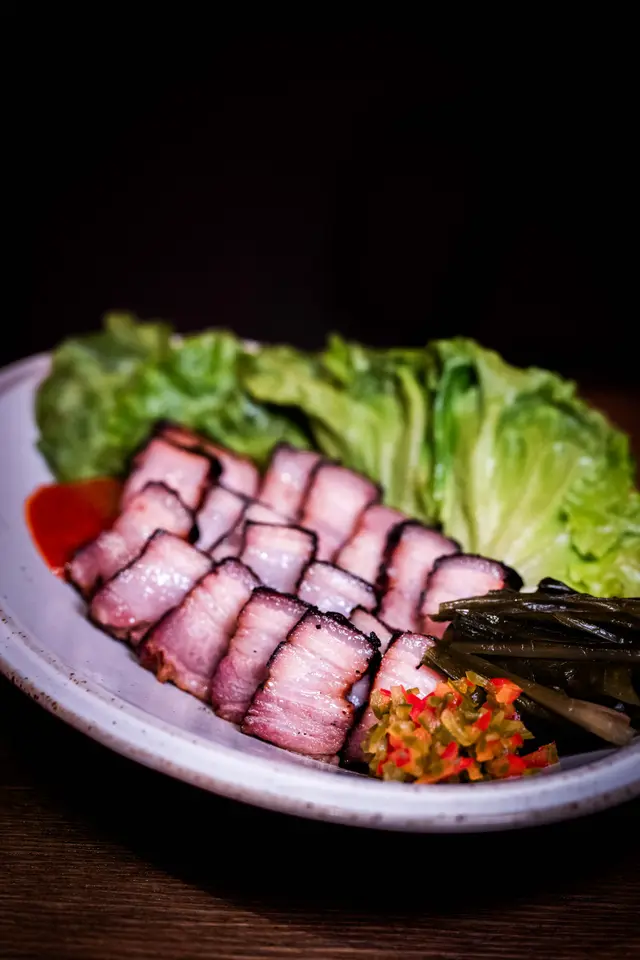 慢煮三十六小時的豬腩肉烤過後配生菜包,醬料鹹香,油脂化開很惹味。
