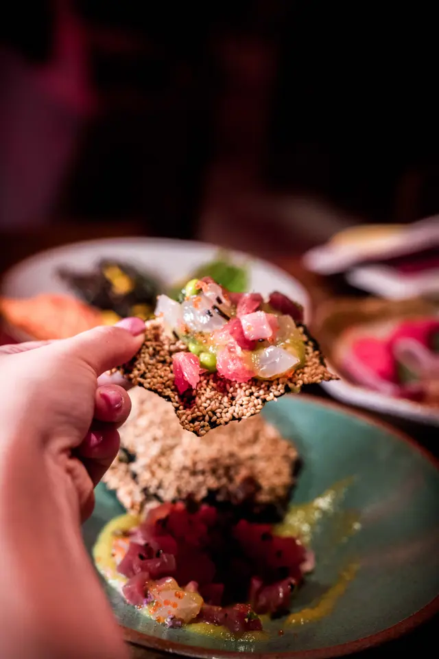 各款時令海鮮刺身他他加入青蘋果薄荷汁及西柚,酸甜帶清香,配上帶濃香芝麻的紫菜脆炸片,很香口的一款前菜。