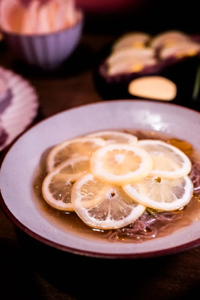 冷麵以自家製白泡菜和蕎麥麵為主,清酸爽口,加上魚生粒點綴,口味清新。