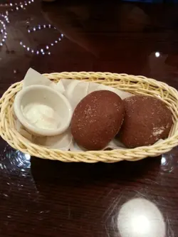這家扒房中午十二點才開始營業。剛坐下,還未點菜,侍應已奉上熱騰騰的麥包,不久又奉上忌廉蘑菇湯和雜菜沙律。我和友人也覺得很出奇,原來餐廳午市時只會提供午市套餐,而所有套餐也是奉送這些前菜,所以還未點菜已自動奉上。