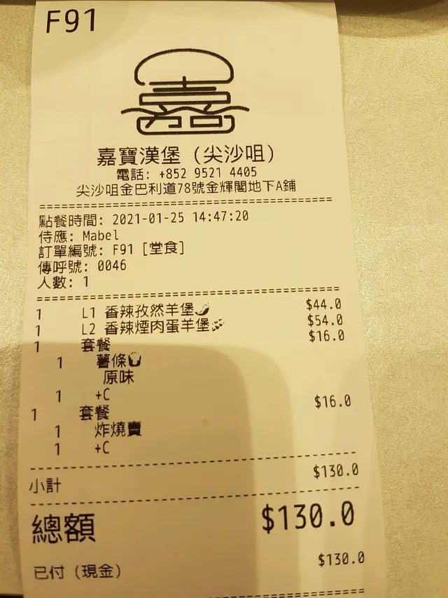在香港高质量的平民汉堡店 yaubar等級32021-01-264K 瀏覽 關注 因为疫情关系我做了外卖配送员(步兵),有次帮过这间送过,突然想起这个店开了很久,每次店外都大排长龙,我就上了网查看一下,原来这个汉堡店挺有名,而且看到餐牌上的价格及种类,挺适合我,因为我是拜观音菩萨,不吃牛肉,但大多数汉堡店主力都是牛肉,不是牛的選择非常少,而且价格贵,所以我想吃汉堡就只有去麦当劳,但麦当劳的质量越来越差,价格也越来越贵!前几天送完餐想去试吃一下,看到贴出的告示,才知道要搬铺,而且还在麦当劳旁边,位置非常好找,25号重新啟业,我就决定了25号去光顾一下!昨天下午同好姊妹一起去了,店铺比较以前的店又大又光亮,感觉挺舒服。入口处就是点餐收钱的前台,咱们点了孜然羊肉堡及香辣羊肉旦堡加套餐(饮只配汽水)$16一份要炸烧卖,一份是炸薯条配2罐汽水,然后付款,服务员给一个应该是电子叫号器的东西(挺先进,不用麻烦排隊或等叫号,非常方便),找了一个位置坐下,坐位挺舒适的。然后过了几分钟电子叫器号器会发出闪灯及声音叫你去取餐,取餐后去了调料处拿茄汁,纸巾等东西。我挺喜欢这个调料处想拿多就多少,不用每次去前台问服要。回到位置咱们就开始开吃,羊肉堡非常好吃(我是港人更是个羊痴),有羊肉味但不太羶(就是不太结实,有点松散),有点微辣配上洋葱非常有口感。炸烧卖不过不失。我姊妹是内地(四川)人,她点香辣羊肉旦堡(她看见有香辣及羊肉2字就点了),不过她不太喜欢吃汉堡,她说如果是一片片羊肉会比好,但她大赞薯条炸得新鲜好吃,又软又没有油腻感,而且是原薯仔(土豆)切条。我吃了几条也不错,比较麦当劳更好。整体来说都是不错,价格一般,比较大部份美式汉堡店,价格算是平民化(一般都要一百多块一个好,除麦当劳),质量算是不错,汉堡款式選择比较丰富,特别是不吃牛肉的人来说,而且用羊肉做汉堡的店更是少见。以上食評乃用戶個人意見 , 並不代表OpenRice之觀點。讚好分享在香港高质量的平民汉堡店 嘉寶漢堡 https://s.openrice.com/QrbT0GyiTW0檢舉 張貼 評分4味道4環境3服務4衛生4抵食用餐日期2021-01-25等候時間3 分鐘 (堂食)人均消費$70 (下午茶)