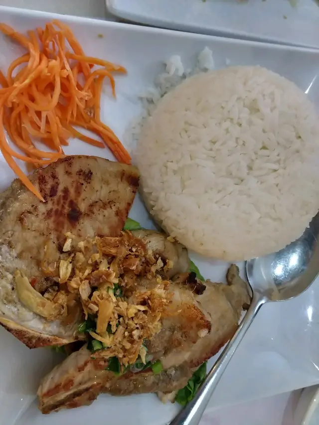 香茅豬扒飯,賣相真的是完全失敗。師傅對美學之要求簡直地獄,紅蘿蔔絲伴碟,凌亂當作藝術,不懂欣賞。豬扒急凍貨,沒肉味也沒香茅味道,煎得過了火喉,就像咬木柴般。蔥油也只是給一點點,就如是貴價食材。白飯對比下有點多,做成效果是木柴配乾飯,旁邊加些雜草。幫你改個地獄名稱吧:古芝地道飯。即南北越戰期間,在地道內吃的飯。
