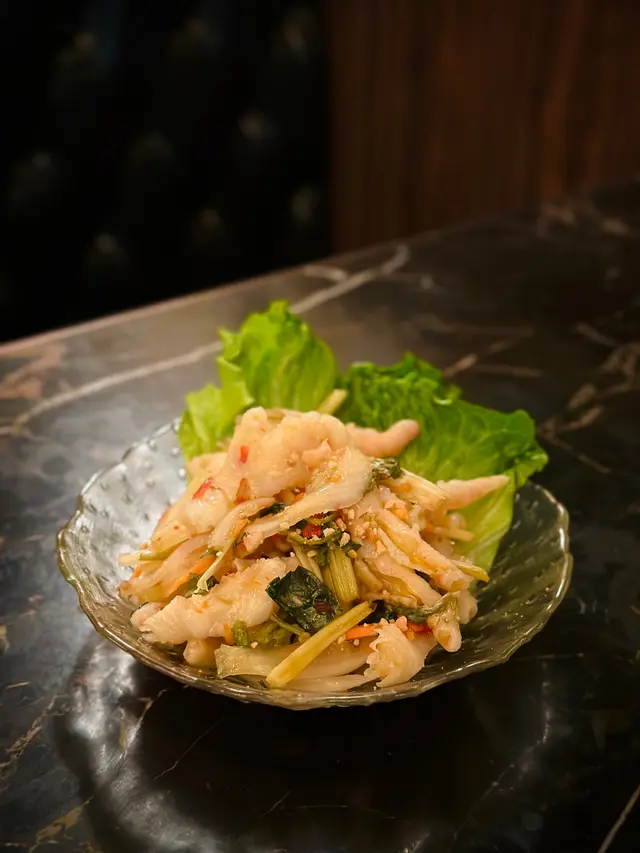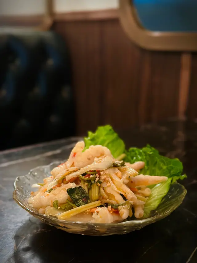 是必點前菜,去骨鳳爪爽脆彈牙,浸泡在酸辣醬汁中,魚露的鹹鮮、青檸的清新與辣椒的微辣完美融合,配上紅蘿蔔絲,開胃又醒神,讓人忍不住一口接一口。