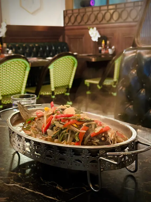 以新鮮鱸魚搭配香濃酸辣湯底,上桌時侍應在我們面前加湯。爐火微滾,香茅、檸檬葉與番茄的香氣四溢。魚肉嫩滑無腥味,湯汁酸中帶甜,蘸上附贈的越式辣醬更添風味,配上一碗熱騰騰的米飯,滿足感十足。
