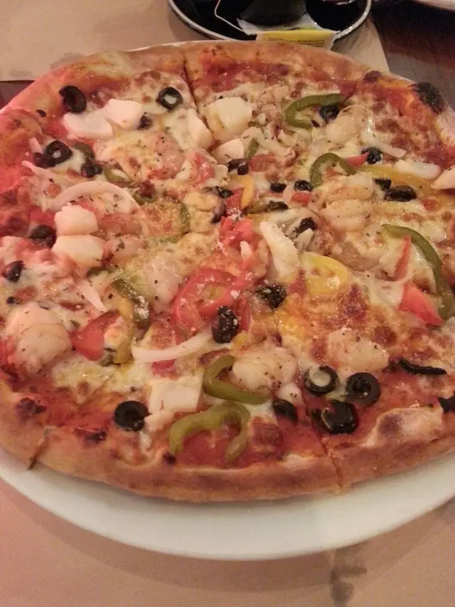 Seafood Pizza - 料好似好多, 但個味道真係唔吸引, 好似冇乜味同埋個pizza底好'林'咁, not good..最好食係0個D olives.