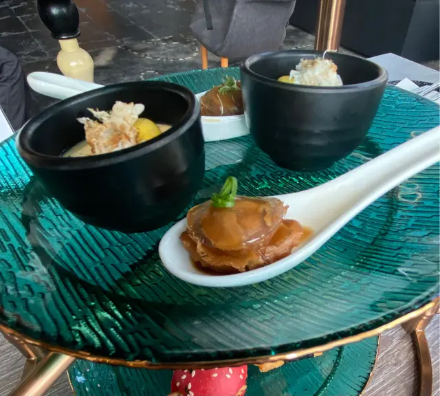 鮑魚泛起光澤,質感爽口,昆布啫喱滑溜很有趣。