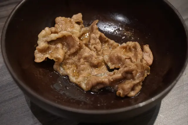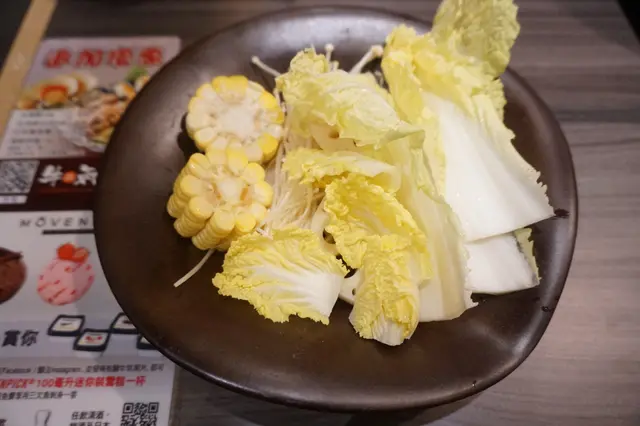 極上美國牛小排是大大的一盤,數數也有十數片牛肉,不會薄如紙的保有口感,看色澤亦相當對辦,表面油花分佈平均,也沒有冰得死實。輕輕一灼,涮肉至六、七分熟便是最佳狀態。牛小排嫩而無筋,牛香不俗,油花亦不少,蘸點日式麻醬最是匹配。相對厚切的關係,這牛小排吃過兩輪以後,已吃不下第三盤了。