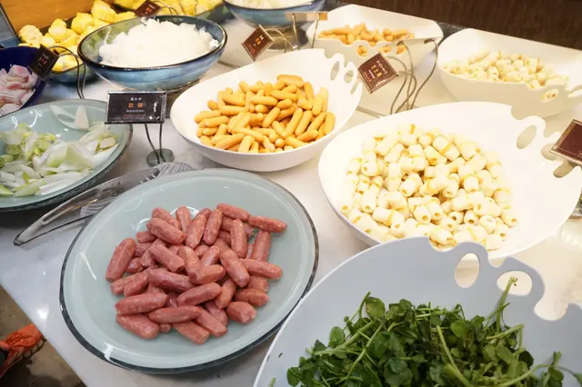 趁牛肉、湯底尚未端上,先巡視放題食桌一週,説到底是90分鐘的限時放題,加上胃納有限,配料再吸引也是要作出取捨的吧!各式丸子是牛気的強項,鱈魚豆腐、墨魚丸、芝士丸、菠菜丸、龍蝦丸、獅子狗芝士腸、蟹柳.....還有放題稀客台灣香腸呢!
