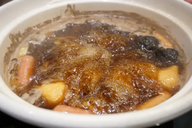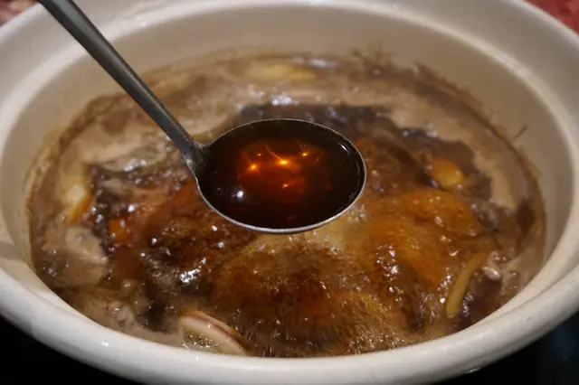 壽喜燒顏色深沉,濃甜而不死甜,當加入綿花糖後甜度再下一城,那甜膩不是人人受得了。吃到尾聲,那翻滾的甜意已到達臨界點,此刻放下碗兒,才喑喑盤算剛才的瘋狂喝下了多少糖份。撫着剛瘦下來的腰枝,立時閃過一絲悔意,不過很快就被甜膩的快感蒙閉了理智。