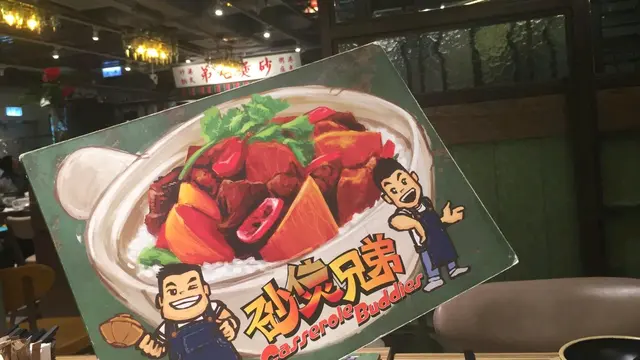 我好鍾意「砂煲兄弟」這個名稱,無論兄弟姊妹都會有一份深厚的情感,今日有一位中學同學生日,正確來確是一位學長,提意到最近將軍澳有一間新開Fusion煲仔飯,我就膽粗粗自己入東港城,起初都以為好難搵間店舖,好佐沿路都有「砂煲兄弟」廣告引路,門外都頗多顧客等候,相信好食先會多人等,同學們已安排一間V. I. P ROOM, 餐廳內空間寬闊,裝修頗有懷舊特色,選用了50-60年代軍械綠,坐低後了解餐牌,煲仔飯款式算多,又有煲仔小菜,又有地道小食,咁就Order佐個「自家製泡鳳爪」,「鹹魚肉餅飯」及「臘味煲仔飯」,當男侍應送上煲仔飯,未打開蓋已經傳來一陣飯焦香噴噴味道😋我地決定Order 多1個「臘味煲仔飯」(有相為證),又要勞煩這位男侍應,最後當然要送上🎂生日蛋糕,咁啱又係這位高大型仔男侍應經過房門,但他沒有露出不悅的臉孔,經常自動自覺問我地是否需要水,叉或碟,更加為我地拍照,今晚實在太高興👍👍👍