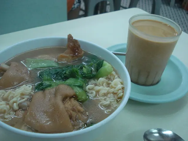 3點3, 食下午茶吧. 餐牌中有豬手麵, 就來試試看老冰室的豬手得唔得. 聽開老闆既conversation, 記者曾經問佢, 冰室同茶餐廳有什麼分別. 他說我呢一個年紀, 好難講出有什麼分別, 因為冰室是30年代既產品, 到接手時, 已經演化成茶餐廳. 手指一指, 我呢間根本是餐廳, 冰室應該只是賣奶茶咖啡, 菠蘿油的. 那會有咁多野食. 心想老闆哥, 說不懂其實懂, 只是不想上電視做節目而已.