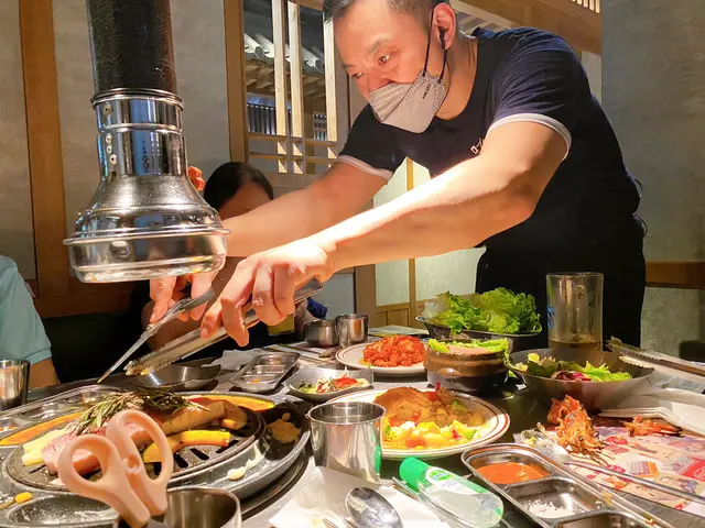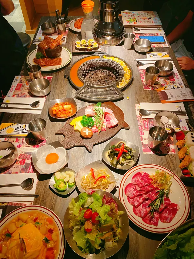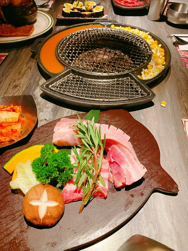 熱情有禮嘅職員仲幫我哋燒厚切豬五花, 烤到外脆內嫩, 包住生菜食可以減低油膩感, yummy🤤