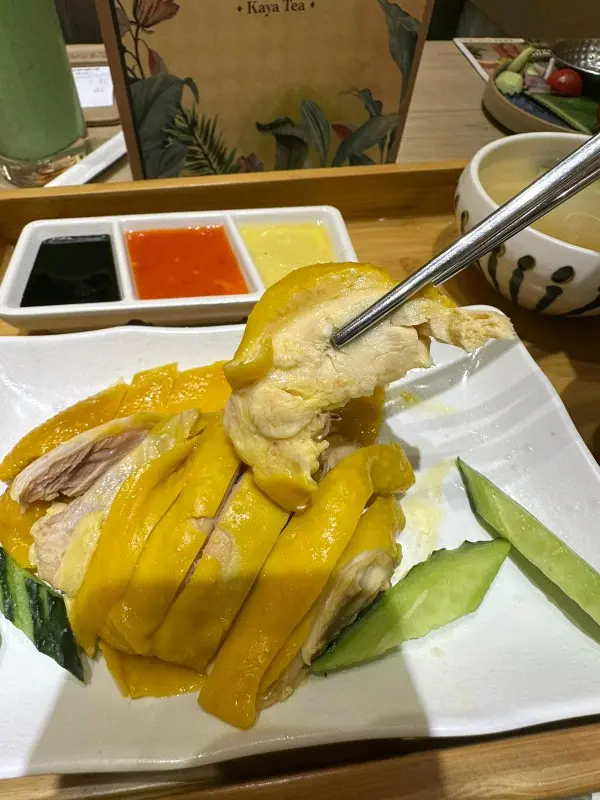 大份抵食的下午茶餐 follow.m.y.eatlog等級42025-08-07357 瀏覽 關注 位於坑口的新加坡菜餐廳,佈置裝修帶東南亞風,座位舒適。下午茶份量跟平日差不多,性價比較高。11海南雞飯 一份套餐有一碟海南雞、油飯、雞湯及三色醬汁。雞件多件,雞皮爽彈,雞肉全去骨,啖啖肉且口感嫩滑,蘸點醬汁,配飯吃,特別開胃。街頭燒雞串 加配一份小食,兩串燒雞,肉質厚實,燒得焦香,配搭參峇醬吃更加香口。班蘭咖央多士 下午茶來個馬拉西多士,多士烘得非常香脆,中間夾著一塊牛油,麵包塗上了咖央醬,層次豐富。椰子班蘭冰 夏日最需要一杯冰凍特飲解解渴,椰子味香,散發著淡淡的班蘭清香,很清涼。以上食評乃用戶個人意見 , 並不代表OpenRice之觀點。讚好分享大份抵食的下午茶餐 咖吔 https://s.openrice.com/QrbT0fTPT00檢舉 張貼 評分5味道5環境5服務5衛生4抵食用餐途徑堂食