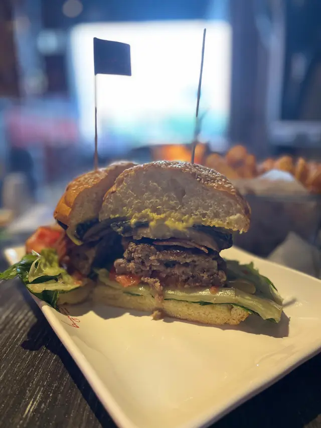 今日揀左蜜糖芥茉大烤菇煙肉牛肉漢堡、扭扭薯條、水蜜桃冰茶 。