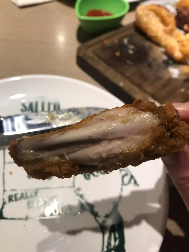 西餐係我的至愛,所以今次選了樓層盡頭的The salted pig.餐廳裝修十分有趣,牆上是一堆堆的小豬再組成了大豬仔。十分可愛!