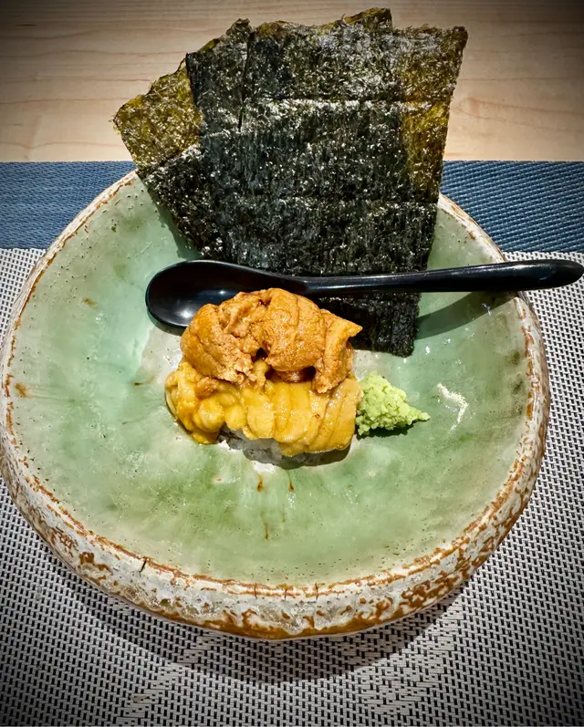 北海道馬糞海膽 - 一個黃馬糞海膽加一個赤馬糞海膽,加埋紫菜食,味道一流