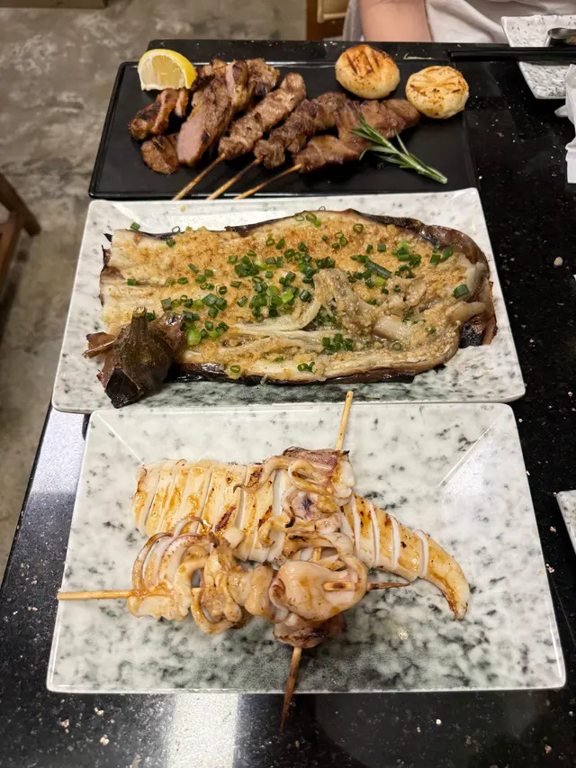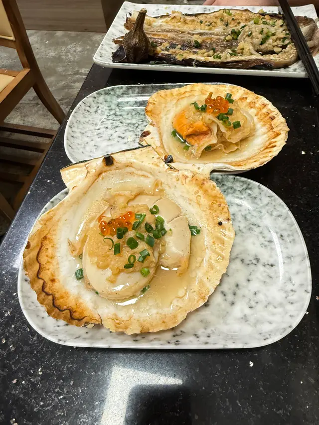 一入店,老闆好熱情😄,即刻介紹今日靚海鮮🦞,講真,食串燒唔叫海鮮真係浪費😅。可惜蟶子賣晒😭,只有扇貝同北寄貝。另外仲叫咗店舖推介:牛肋肉、黑毛豬、蒜蓉茄子等等,陣容強大!