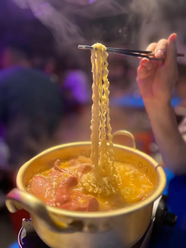 一嚟就上咗個部隊鍋,本身湯底夠濃縮另外我哋加埋芝士落去,食落口感好豐富👍部隊鍋要用嘅材料好簡單,但係呢個正正就係韓國嘢嘅精髓