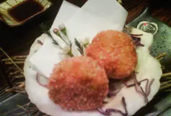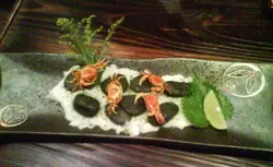 一開始店長送左個小食, 係炸蟹仔. 真係好靚好得意.