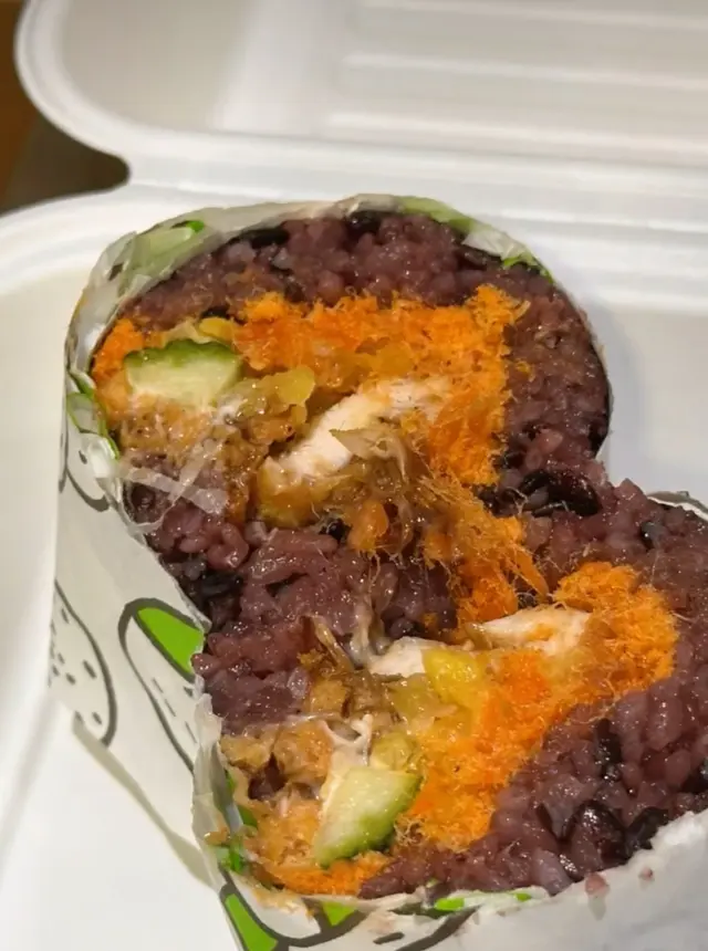 觀塘人氣飯團店——阿杏飯團,長期深受街坊喜愛,主打紫米健康飯團,配料足料又有誠意。每個飯團都係即叫即整,透明櫥窗睇到師傅落料過程,睇得安心又開胃!紫米包住肉鬆、青瓜絲、醃蘿蔔、油條脆脆,口感層次豐富,健康又飽肚。