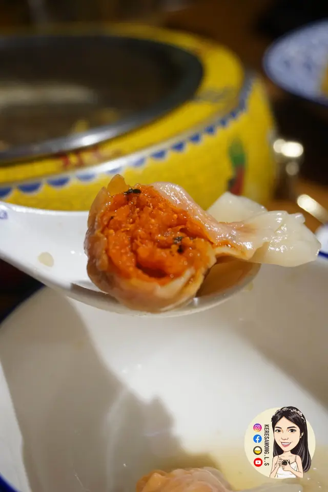 每隻餃表面冇水氣, 粒粒飽滿, 真材實料, 鮮橙色餡料可見用咗唔少蟹粉, 鮮香味十足!